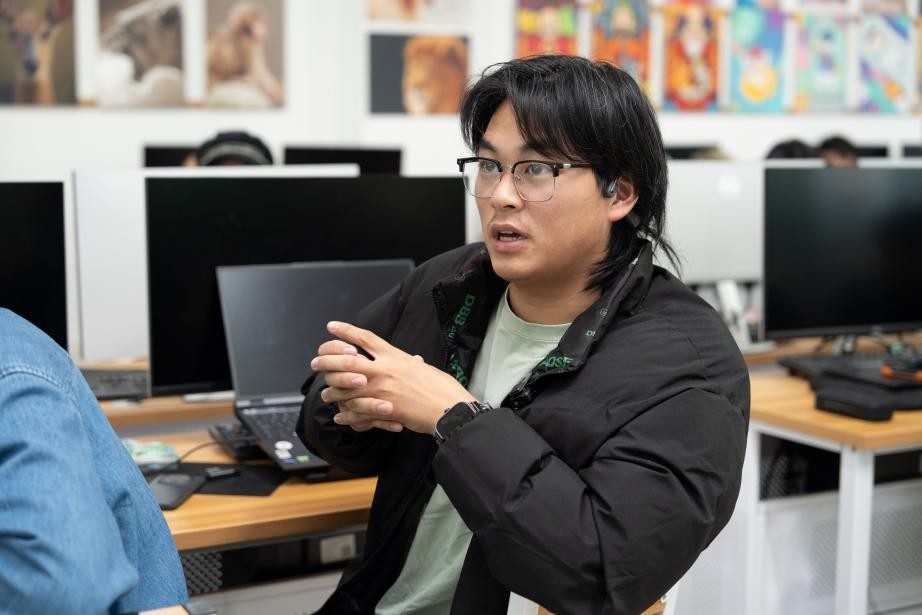 随后,胡国庆老师对学生所拍人像与产品作品进行点评,并对学生提问进行答疑解惑,引导学生们合理运用人工智能技术,以保持作品的创意性与独创性。
