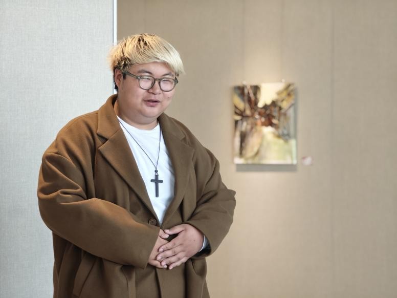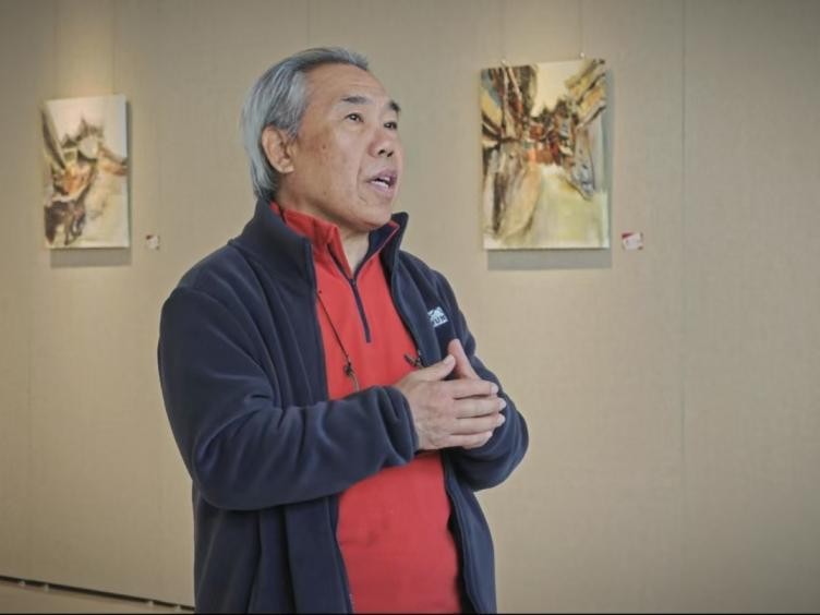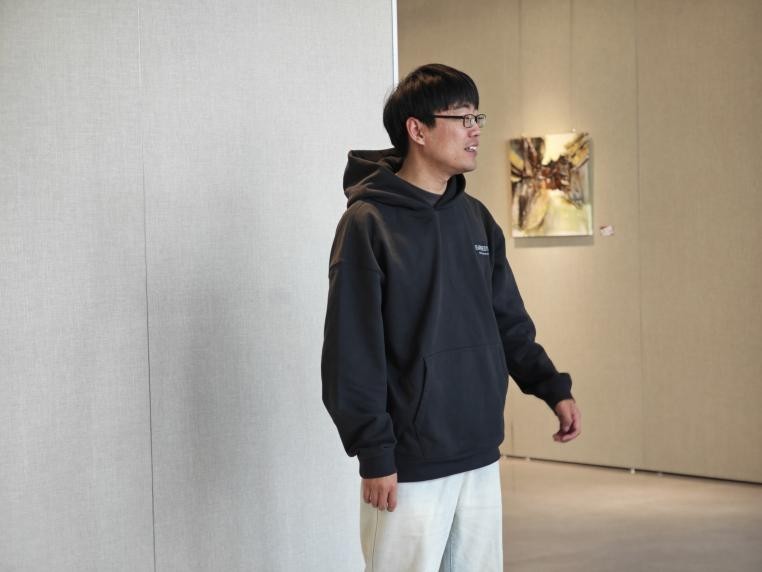 参观展览的学生代表叶钧皓在致辞中分享了他作为参与者的感受。他认为:“这些作品不仅仅是在描绘侗族建筑的外观,更是在感知其中蕴含的民族情感。我们都去过三江侗族村落写生,侗族建筑对于我们来说,不仅是一个图像,更是一种情感的共鸣,一种文化的归属感。通过这些作品,王云龙老师不仅在传承文化,也在探索如何将传统元素转化为现当代的艺术语言。”