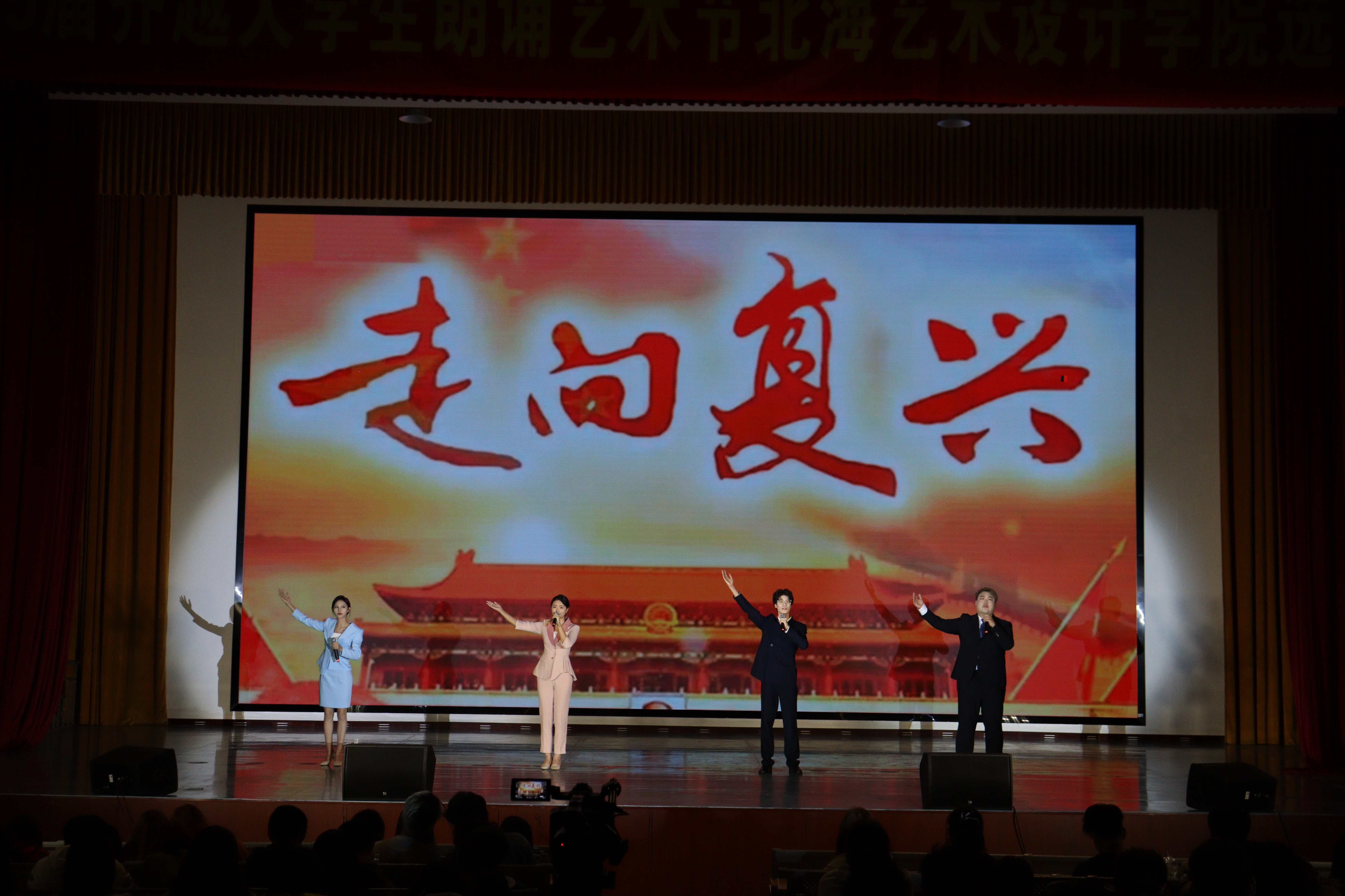这次活动通过朗诵的艺术表现形式,将爱国主义思想和有声语言艺术创作紧密地融合到了一起。大赛的成功举办,展现了北海艺术设计学院播音与主持艺术专业同学们的青春风貌,也让同学们明确了追梦方向和前进目标。(吴广帅、曹淳琪、李壮壮、祝馨怡/摄)
