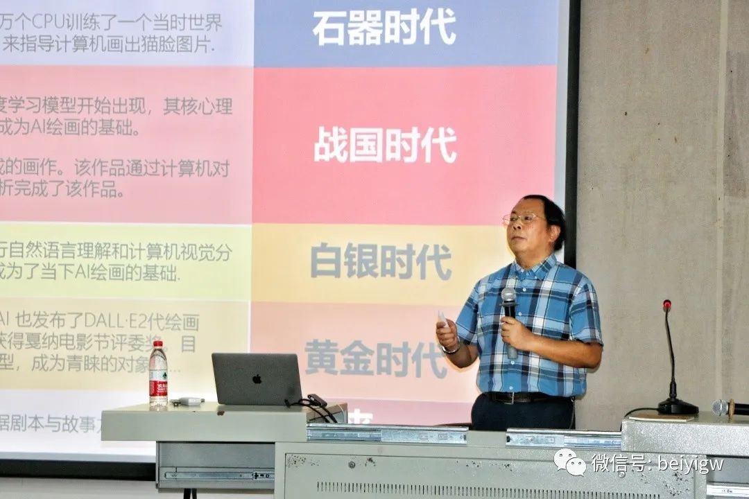 在机器智能的挑战讲述中,李四达教授介绍到人工智能生成技术Generative,通过展示经典设计产品例子,阐释说明人工智能艺术需要艺术家的参与指挥,让学生拓展艺术认知的同时领悟到艺术家的创作灵感。