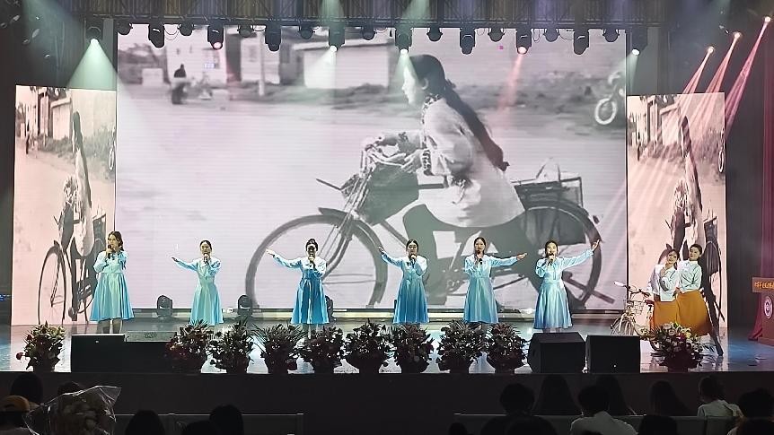 “声织星河・万象共情” 篇章情系当下,展望未来。模拟直播《买买买北艺直播间》紧跟时代潮流,同学们化身 “带货主播”,妙语连珠、互动感十足,生动展现新媒体语境下的传播新形态;朗诵《骑自行车的中国人》以质朴深情的声音,描绘平凡生活中的时代画卷,引发强烈共鸣;压轴的情景歌舞《声叙流年》将三年求学点滴融入歌声与表演,在温馨感人的氛围中诉说同窗情、师生谊和对未来的憧憬。
