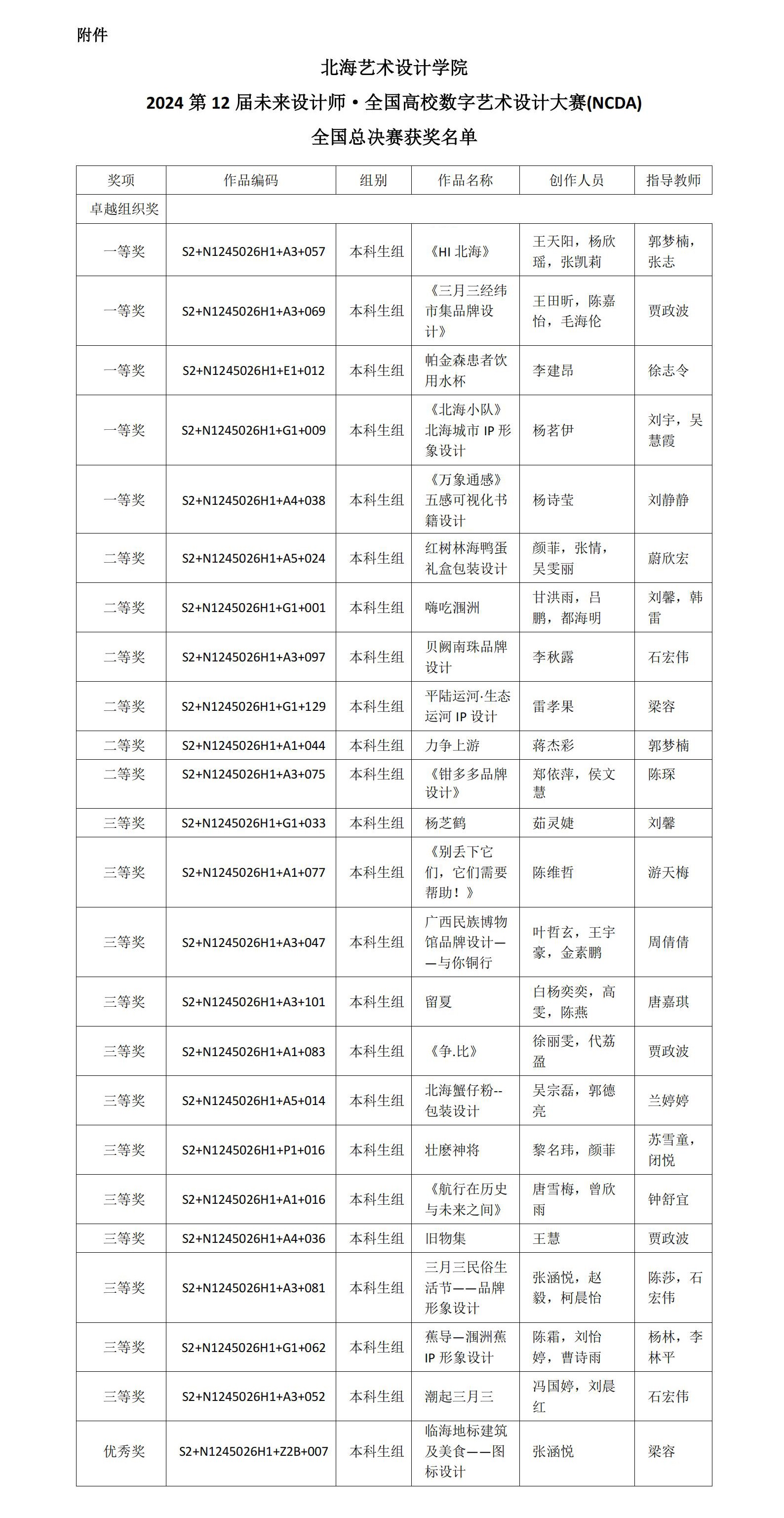 我院师生在202412届未来设计师·全国高校数字艺术设计大赛(NCDA)中取得优异成绩!我院学生共荣获全国一等奖5项、二等奖6项、三等奖12优秀奖1项;广西区赛一等奖45项、二等奖32项、三等奖40我院荣获教师组广西赛区二等奖1项、三等奖1项。