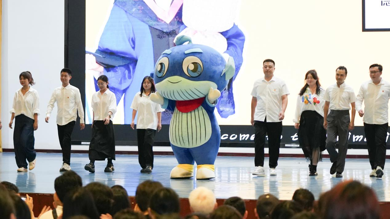 新生辅导员携学院吉祥物“阿布”亮相
