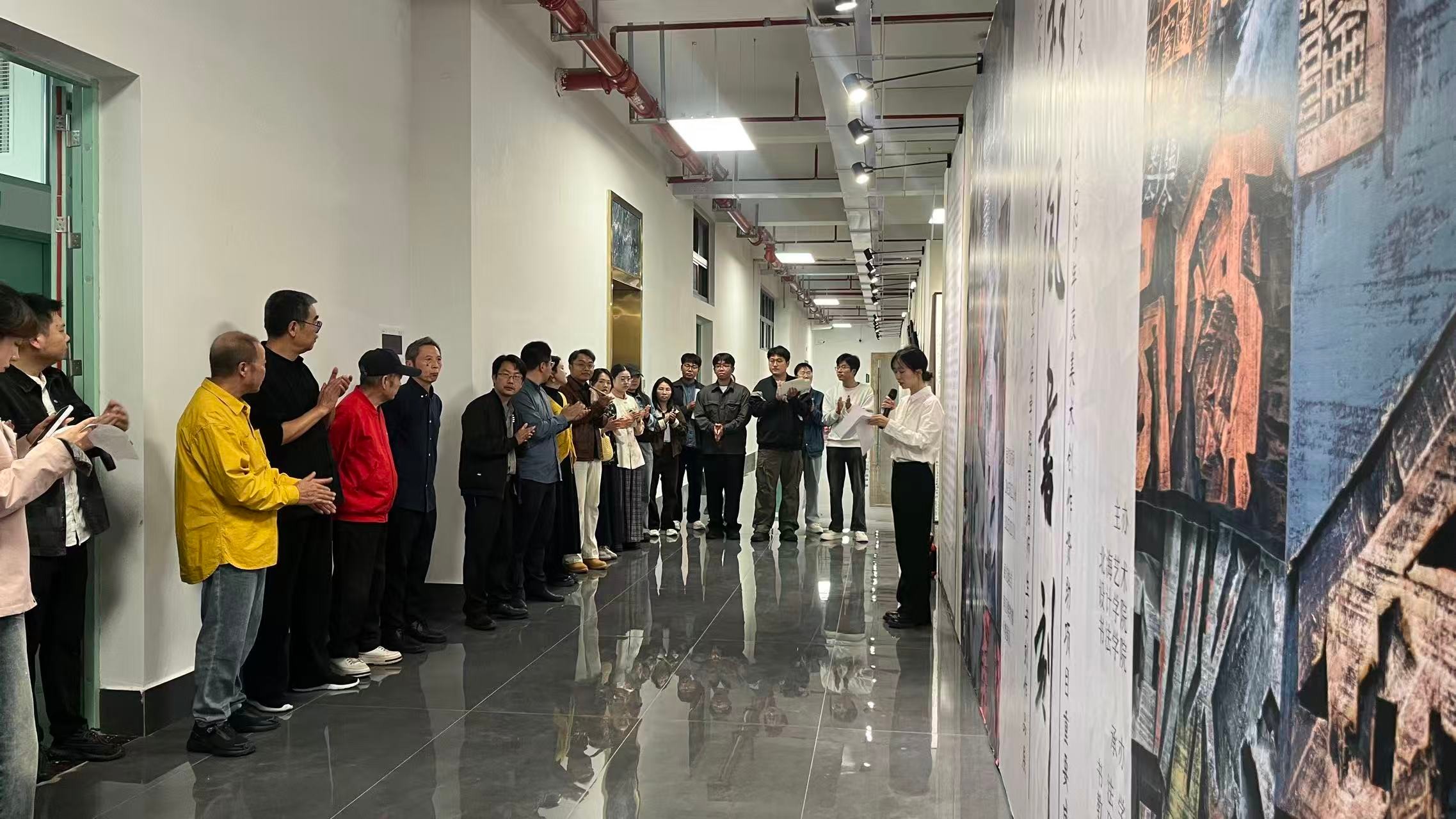 活动最后,黎东明院长在致辞中高度评价本次展览的教学意义与实践价值,指出书刻艺术课程的成功实践,不仅拓展了学院专业教学的广度与深度,也为传统文化的当代传承注入了新活力。师生作品中所展现的探索与创新,充分反映了学院在推动学科建设与发展中的务实努力。他勉励师生继续深耕教学研究与创作实践,共同推动学院专业建设实现新发展,并正式宣布展览开幕。