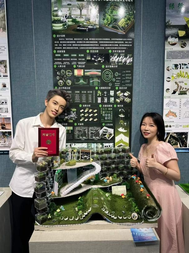 开幕式现场还同步举行了颁奖仪式。本次成果展经过严格评审,共评选出特等奖、最受关注奖、一等奖、二等奖、三等奖及优秀奖53组,同时表彰了14名优秀指导教师。其中,作品《锦堂春·囍》《森泽·泊川湿地馆》凭借鲜明的主题、精湛的制作摘得特等奖,《生灵絮语-生物多样性科普展厅设计》《醒狮踏韵·非遗寻踪》等作品分别斩获各类奖项。所有获奖作品紧扣“文化之美”核心主题,巧妙融合传统与现代设计理念,充分展现了学子们扎实的专业功底与丰富的创意思维。