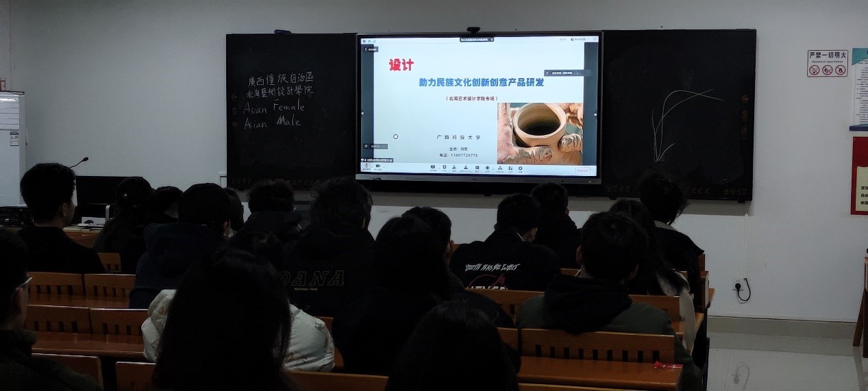 2021年12月31周五上午9:00 ,刘   凯面向摄影专业2020级学生授课《设计——助力民族文化创新创意产品研发》。