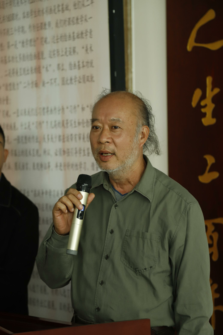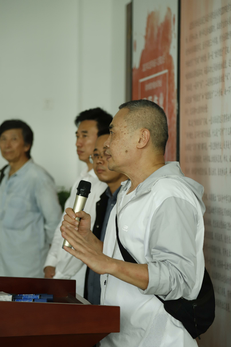 北海市美术家协会主席肖畅恒讲话,他表示很高兴能与北海的高校进行互动,并预祝本次展览成功。