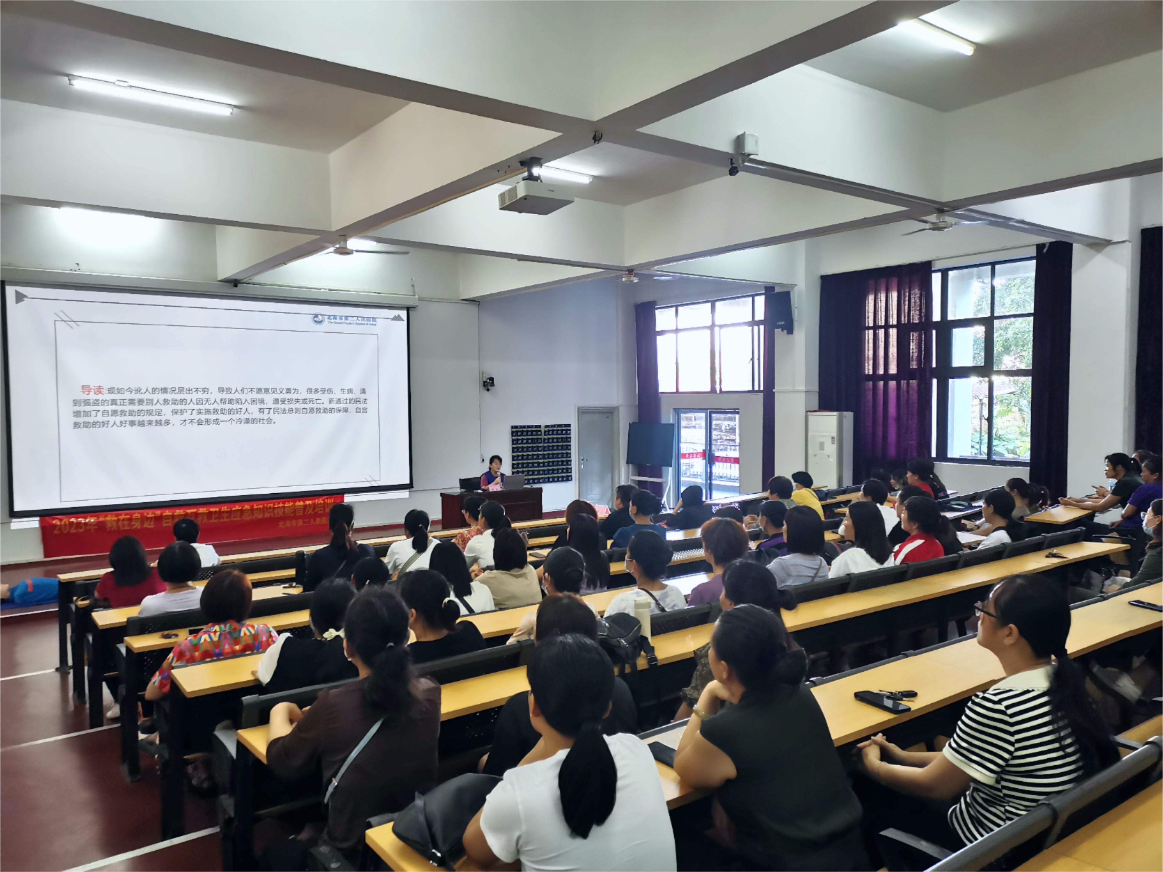 随着现代社会的发展,人们新的生活模式结构下,在生产、学习、生活环境中发生的危重急症、意外伤害愈来愈屡见不鲜,为提高我校教职员工的急救意识与现场急救能力,11月9日下午,我校组织开展自救互救卫生应急知识技能培训。培训由周晓敏老师主持,北海市第二人民医院的鲁玄主任、黄焱医生及蒙春良主管护师分别进行了应急救护知识讲授,并现场演示了心肺复苏术、气道阻塞的现场急救、创伤止血包扎技术及实操指导。通过此次应急救护知识技能培训,加强了我校教职工对急救技能的了解,也为我校应对突发事件,及时、有效开展现场救护积累了经验。