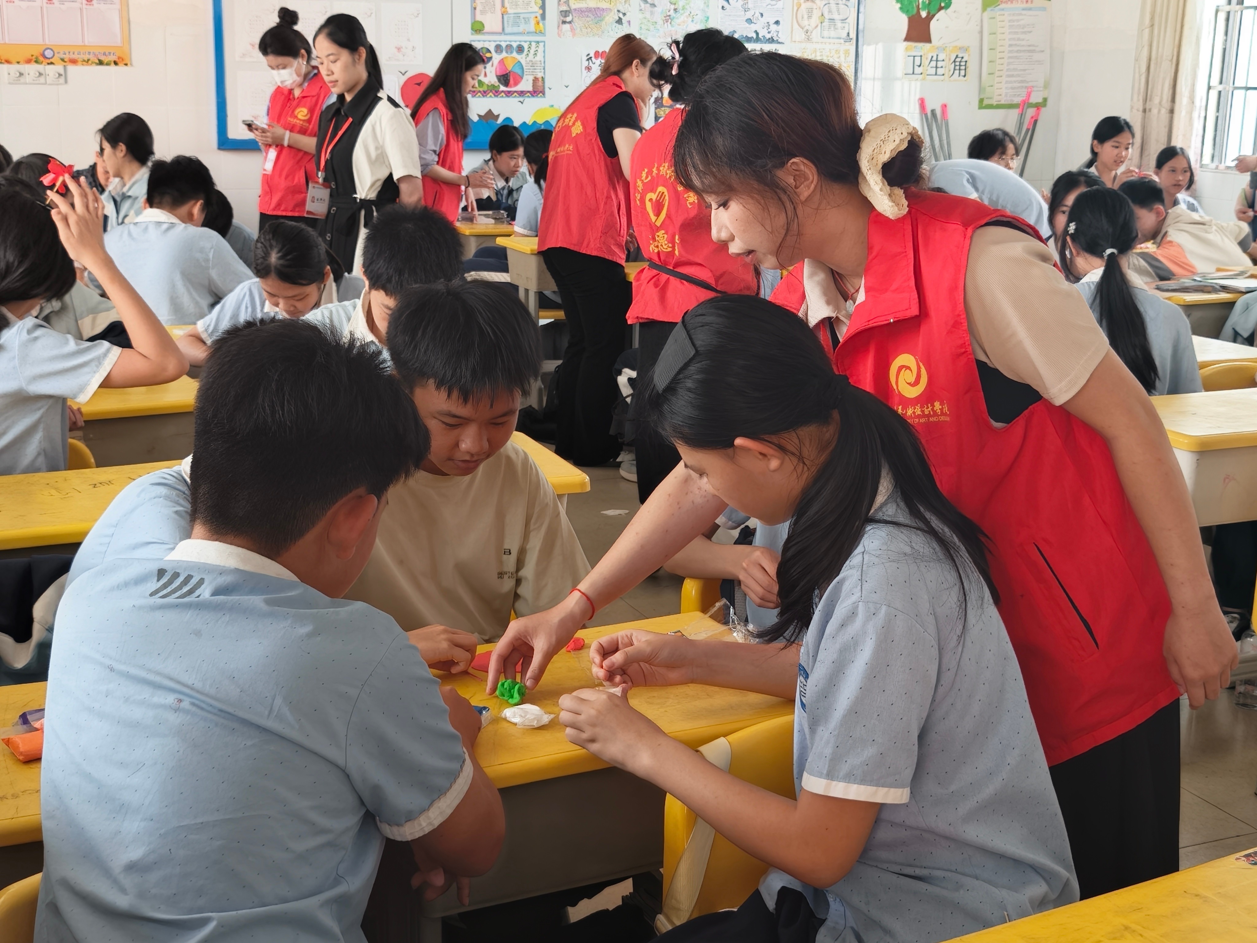 (志愿者带领学生进行手工制作)