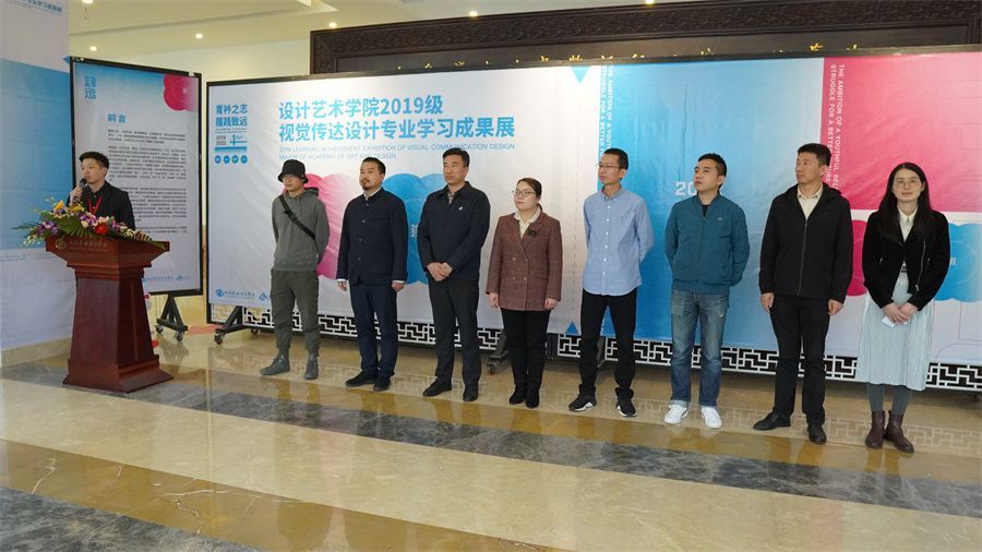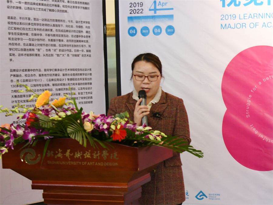 校党委副书记韦静月宣布设计艺术学院2019级视觉传达专业汇报展正式开幕。