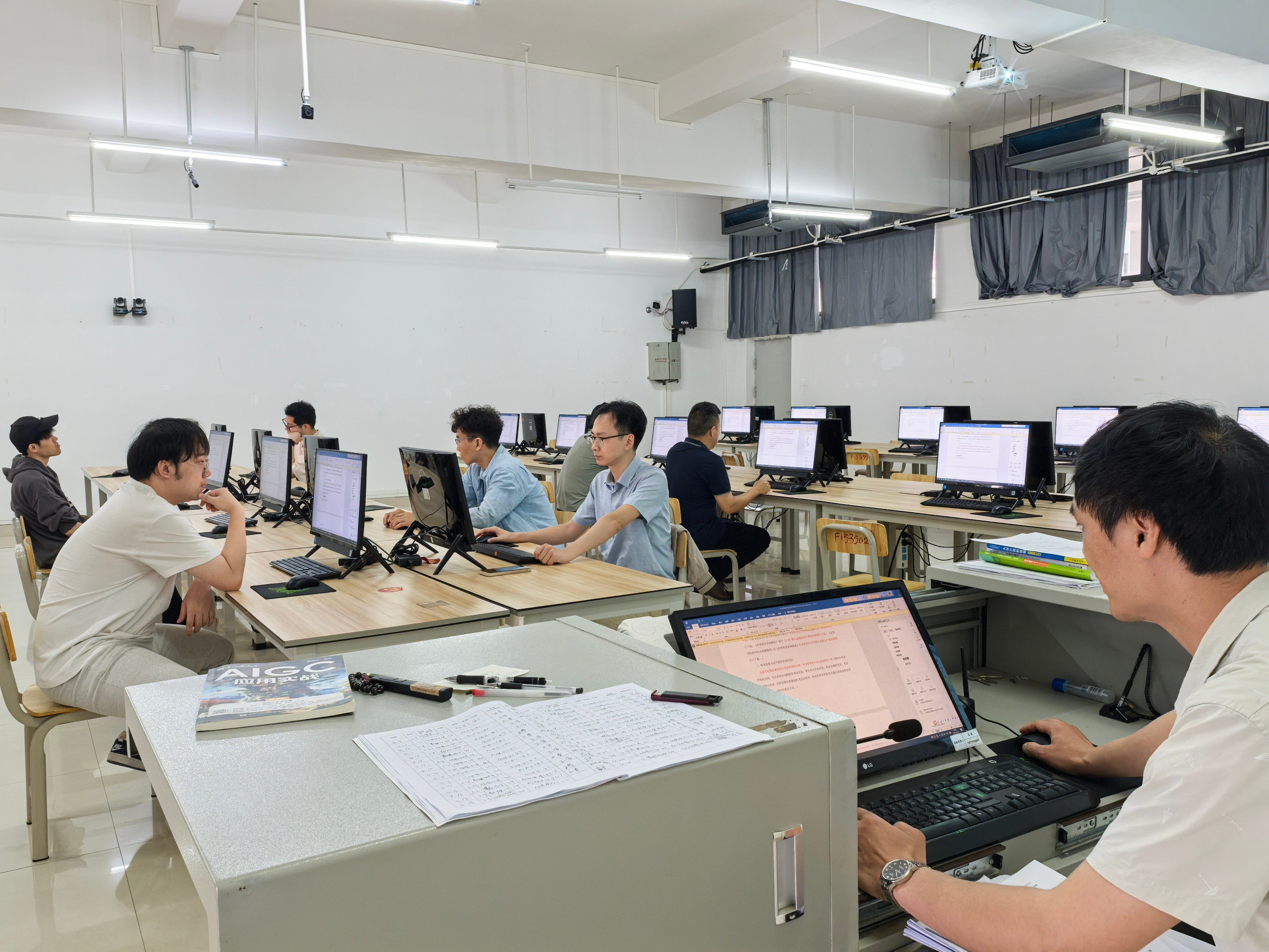 2025 年,广西高校教师资格理论考试迎来全面机考改革,我校凭借扎实的技术实力与丰富的考务经验,成功承担北海市唯一考点重任。作为此次考试的技术实施部门,设备与信息处迎难而上、周密部署,圆满完成 6 间考场、300 台考试终端的部署调试工作,为考试平稳有序开展筑牢坚实的技术堡垒。