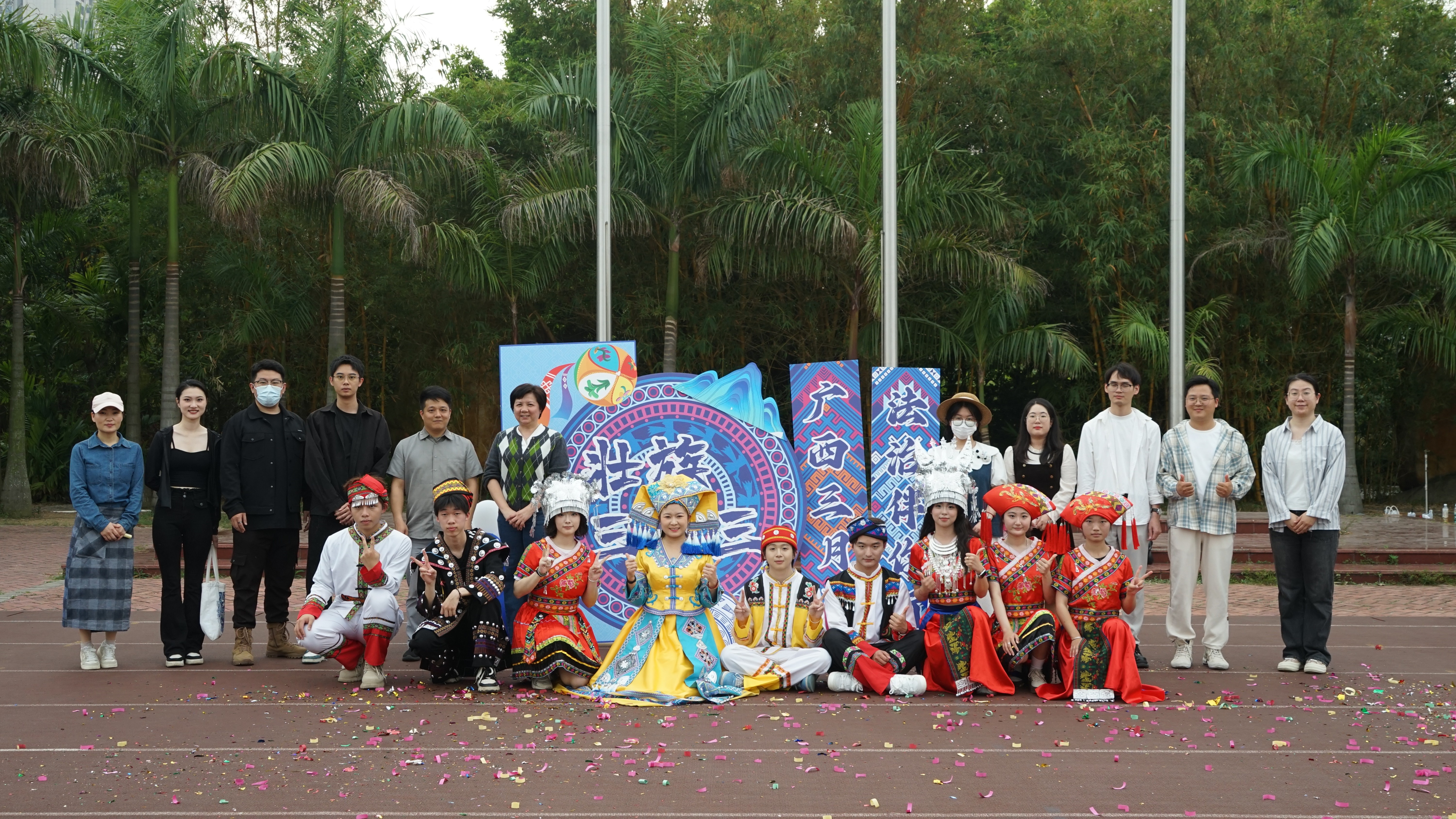 三月三,春风拂面,花香四溢,北艺的校园里洋溢着欢乐与喜庆的氛围。3月28日,为庆祝三月三的到来,进一步弘扬传统民族文化,将法治宣传与民族团结教育紧密结合,我校于西区操场开展以“广西三月三,法治伴你行”为主题的法治宣传游园活动。